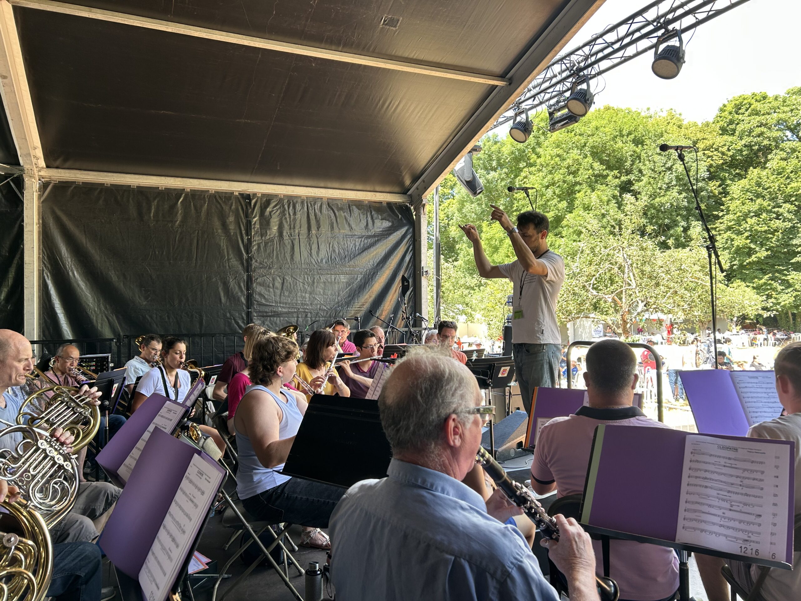 En ce samedi 28 juin 2025, l’orchestre philharmonique a eu le plaisir de participer à la fête communale dans le parc communal en interprétant un répertoire de pièces musicales festives auprès d’un public ravi!